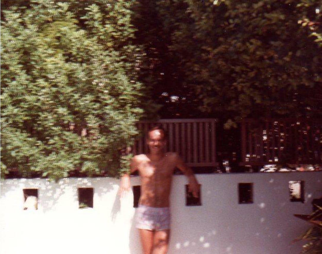 I close my eyes again, the water streaming through the hair on my head, flattening my eyelashes, rippling through my mustache and over the stubble on my chin, across in a caress of the hair on my chest, slowing down and tugging gently at my swim trunks, their soft pink color in contrast to the tan of my legs and the golden hair glimmering in the palm-diffused sunlight. I don’t even think I’m holding my breath any longer, the pool too shallow to drown in, the first time in months that I’ve not been afraid to breath and surely not ready to surface yet, I flip around and push off from the stucco, a torpedo with my arms at my sides, as aerodynamic (if you’re in the water, shouldn’t it be aquadynamic?), the parentheses a breath at the surface, and sleek as an otter, a seal, Sade murmuring from the poolside speakers, the throb of music like the blood in your temple, chest, groin.